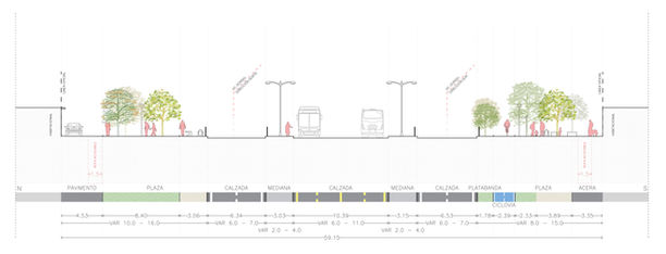 El proyecto se estructuró a partir de 5 sectores, para una coordinación secuencial y eficiencia en el diseño, la programación y la ejecución en terreno. La presencia de amplias platabandas, bandejones continuos, zonas residuales de borde y áreas verdes deterioradas, presentan una oportunidad significativa para fortalecer el espesor vegetal del eje y mejorar las condiciones ambientales del entorno urbano.